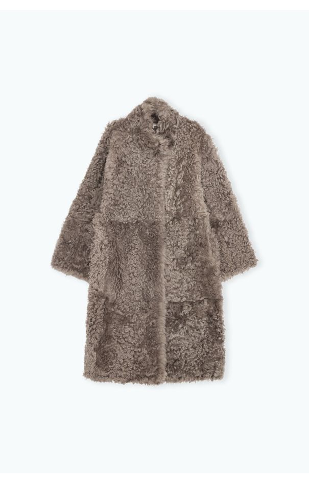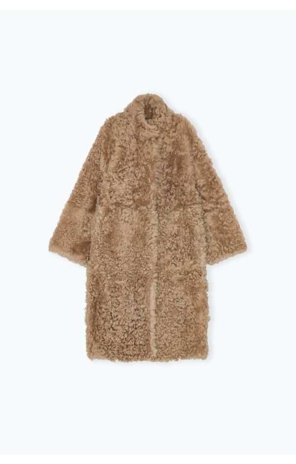 Long Hair Shearling Coat Brown