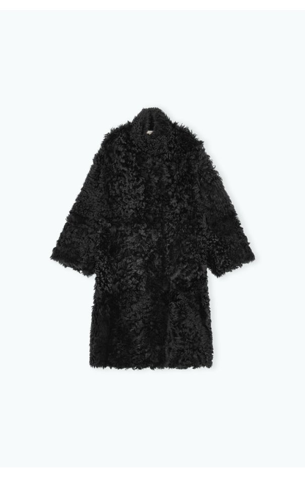 Reversible Long Hair Shearling Coat Black