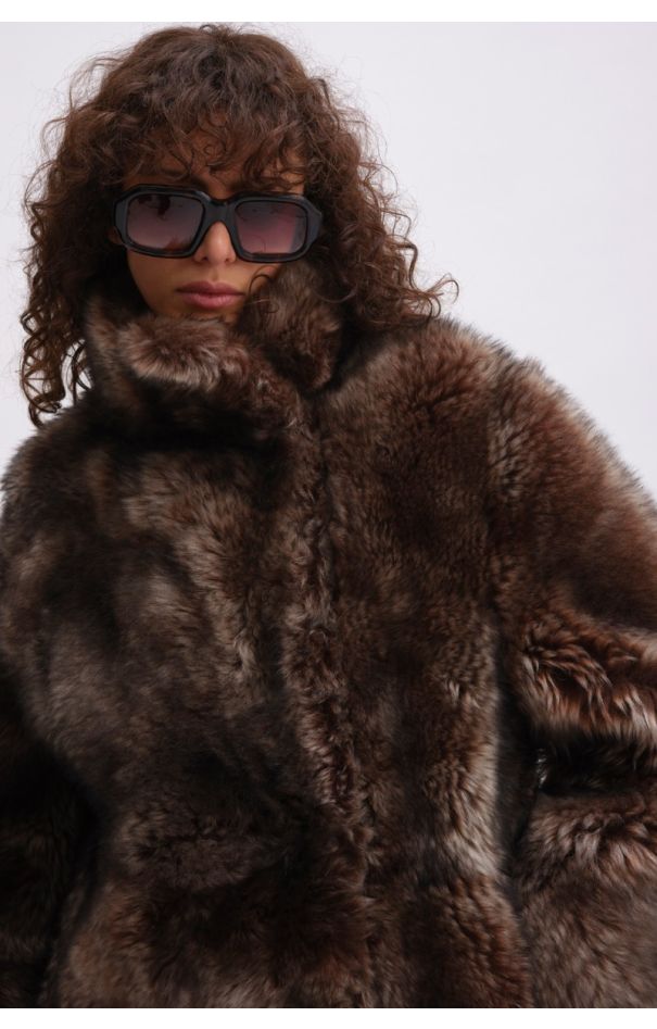 Long Hair Shearling Coat Brown